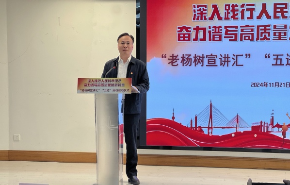 启动仪式后,区人大常委会原副主任,“老杨树宣讲汇”成员袁建民开启“老杨树宣讲汇”“五进”活动首场讲座专题讲座——《贯彻总书记回信精神,共创幸福美好生活——学习习近平总书记给老杨树宣讲汇全体同志回信体会》。袁建民从杨浦区的前世今生说开,讲述了杨浦解放前后的变化与发展。他指出,要贯彻落实习近平总书记回信精神,讲好人民城市故事,践行人民城市理念,共建和谐美丽城市,共创幸福美好生活。整场讲座讲得既有理论的力道,又有实践的温度,让杨浦的历史发展脉络以更形象的方式进入人心。